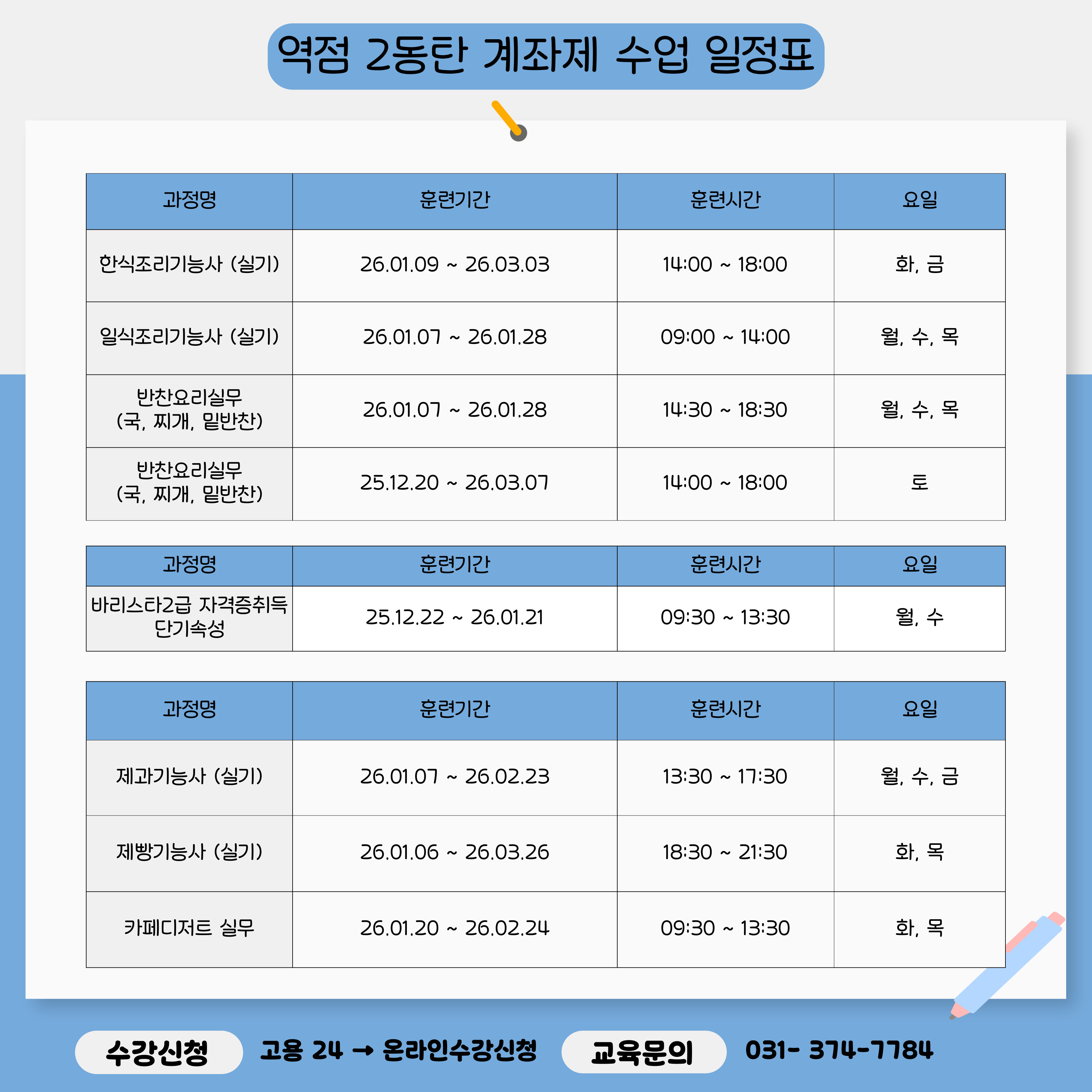 자세한 일정 및 수강 문의는 본원으로 연락주세요.