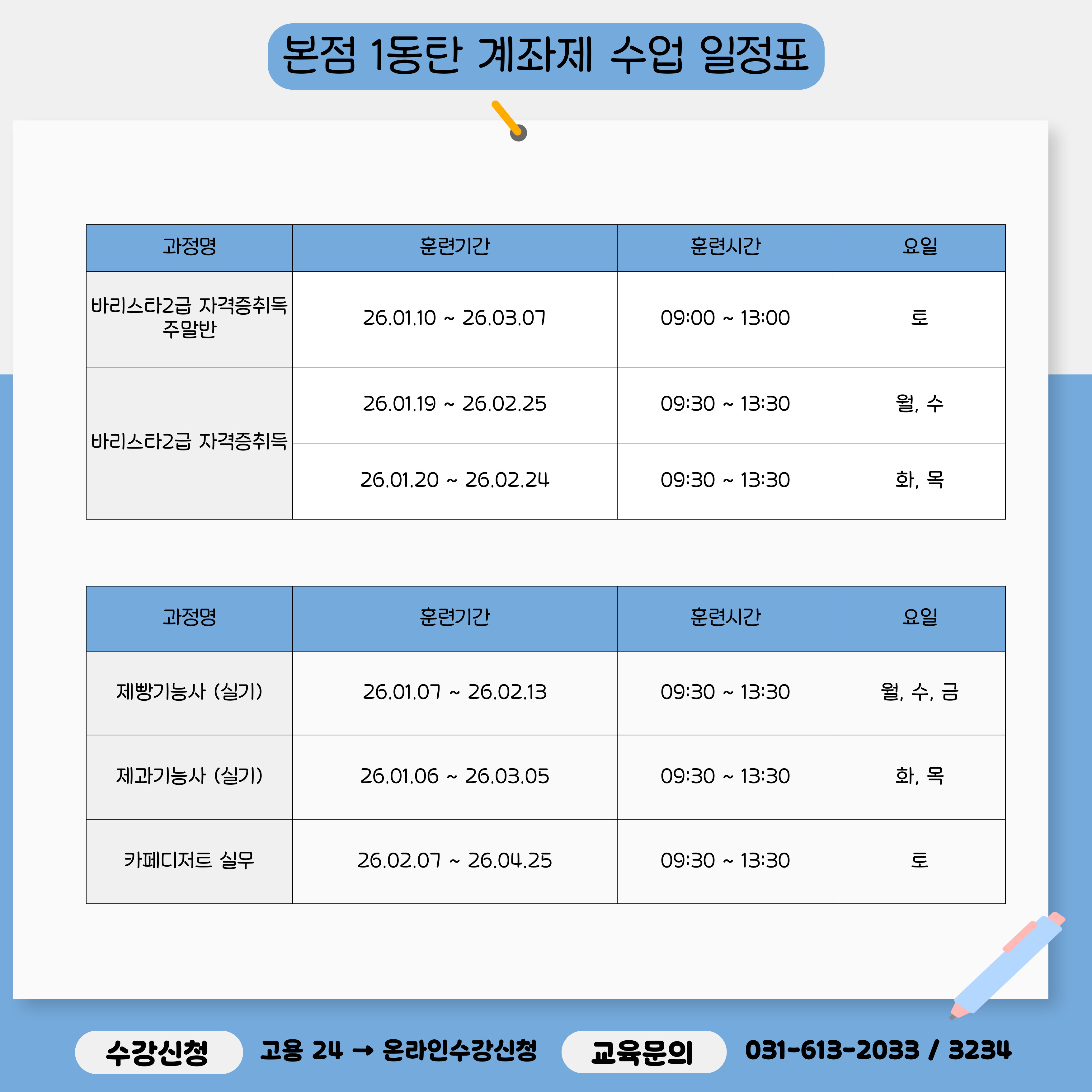 자세한 일정 및 수강 문의는 본원으로 연락주세요.