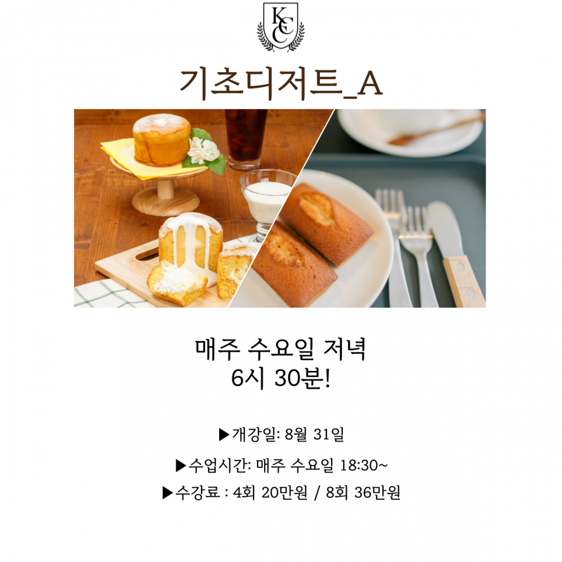 [모집마감/ 단기] 기초디저트_A (4회과정 )