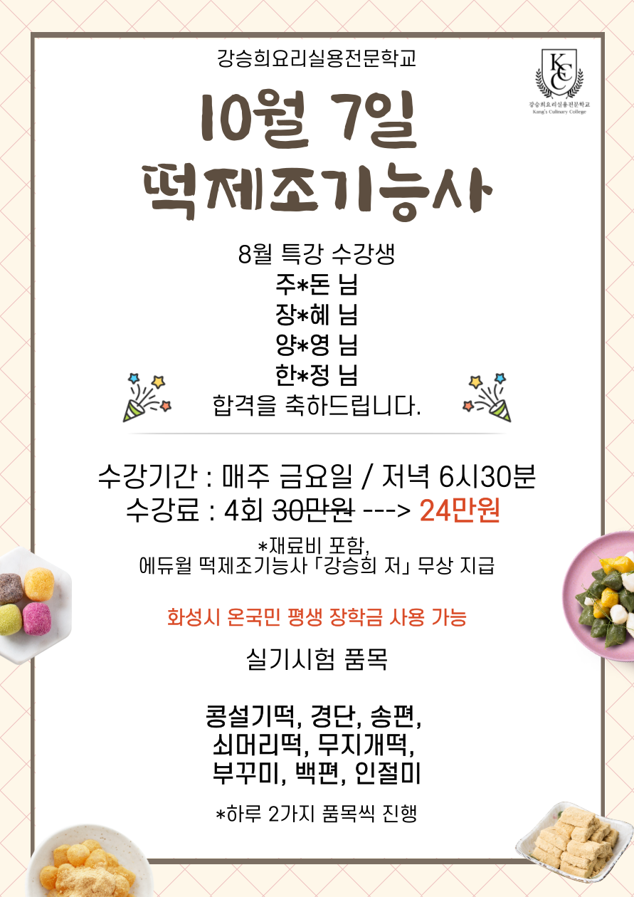 10월 떡제조기능사 실기과정 OPEN