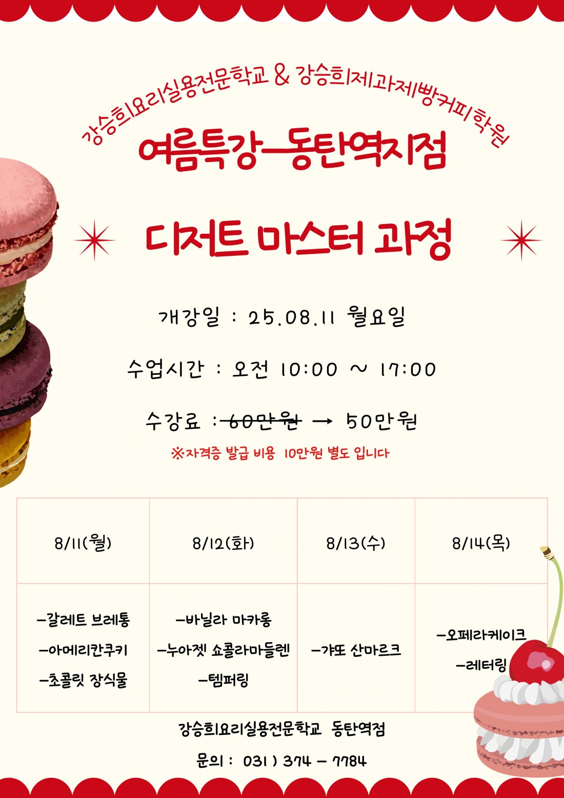 디저트 마스터: 08.11(월) ~ 08.14(목) | 10:00 ~ 17:00 (4일)