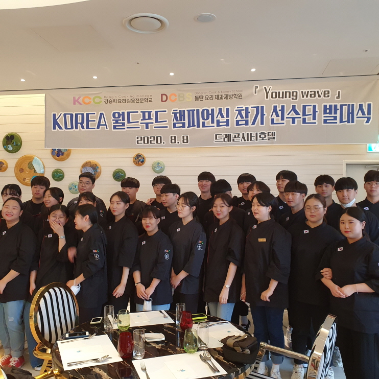 2020 KOREA 월드푸드 챔피언십 대회에 참가하는 강승희요리실용전문학교 Young Wave 선수단과 동탄요리제과제빵학원 디저트대회반 선수단이 서울 용산에 있는