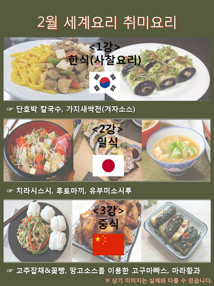2019년 2월 12일 세계요리 수업을 개강합니다.