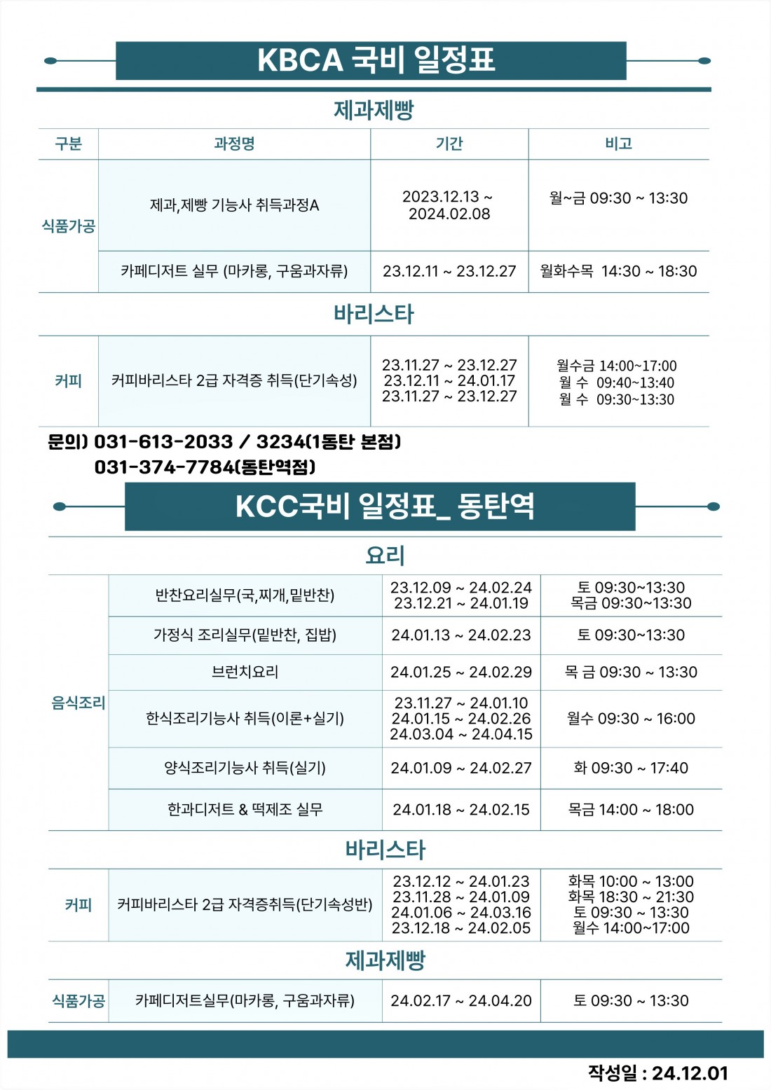 (해당 일정은 강승희요리실용전문학교 인스타에서도 확인 가능합니다.)