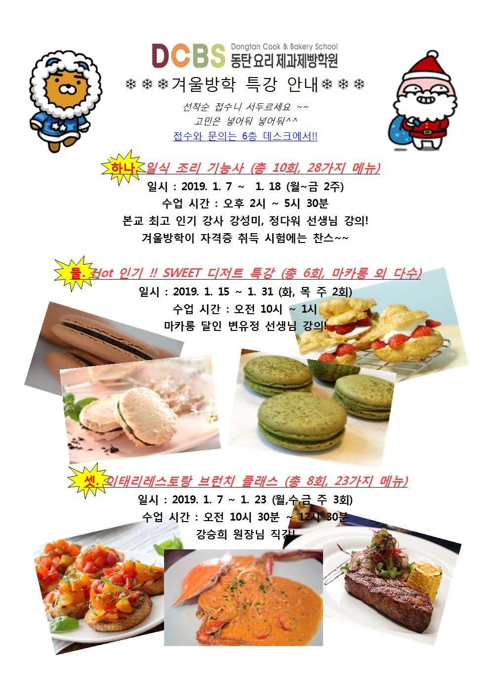 [개강] 겨울 방학 특강 3가지 안내 (일식, 디저트, 브런치)