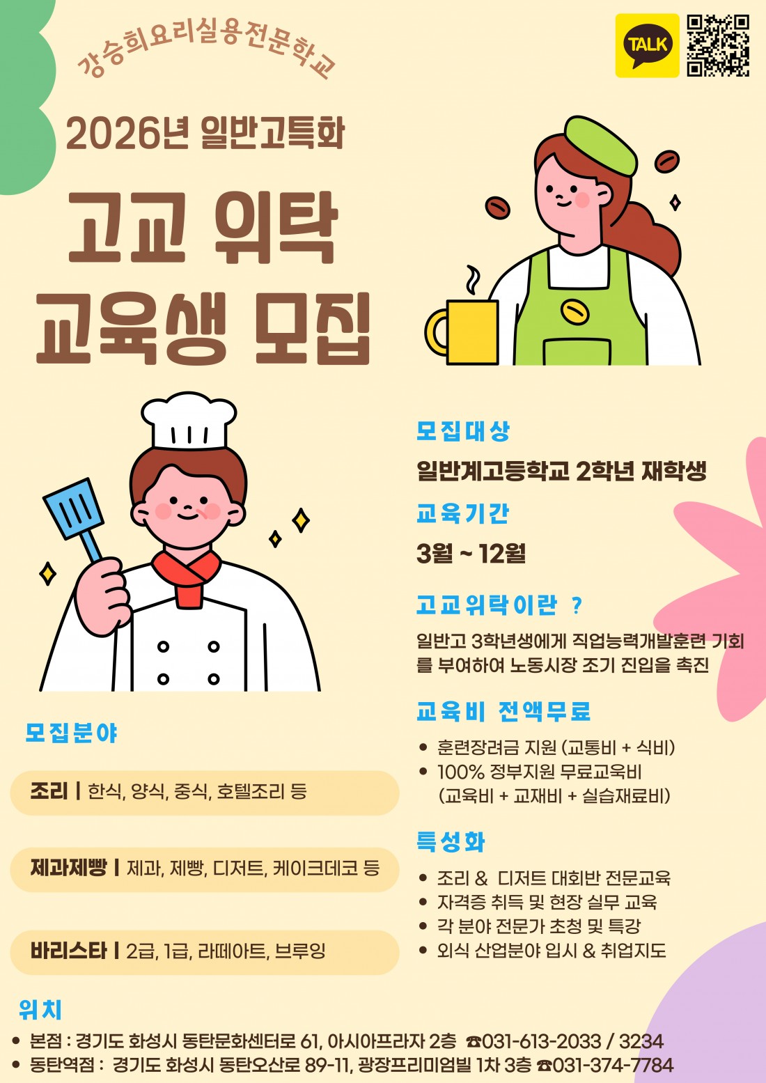 강승희요리실용전문학교는 학생의 내일을 함께 고민하고, 함께 준비합니다.