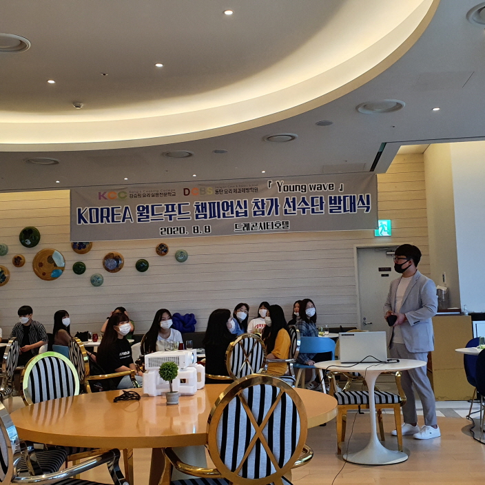 2020 KOREA 월드푸드 챔피언십 대회에 참가하는 강승희요리실용전문학교 Young Wave 선수단과 동탄요리제과제빵학원 디저트대회반 선수단이 서울 용산에 있는