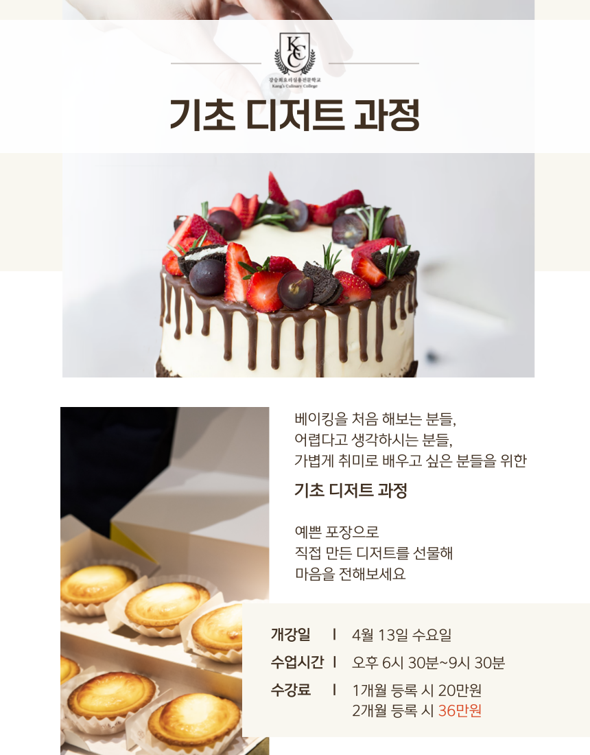 2개월 (8회) 등록시 수강료 10% 할인! 36만원