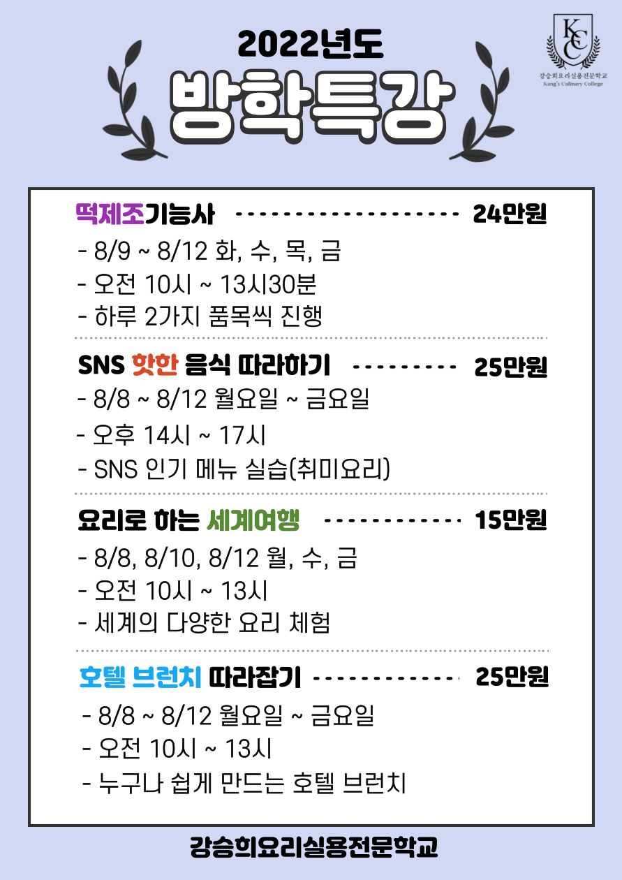 2022 여름 방학특강 수업 안내드립니다!