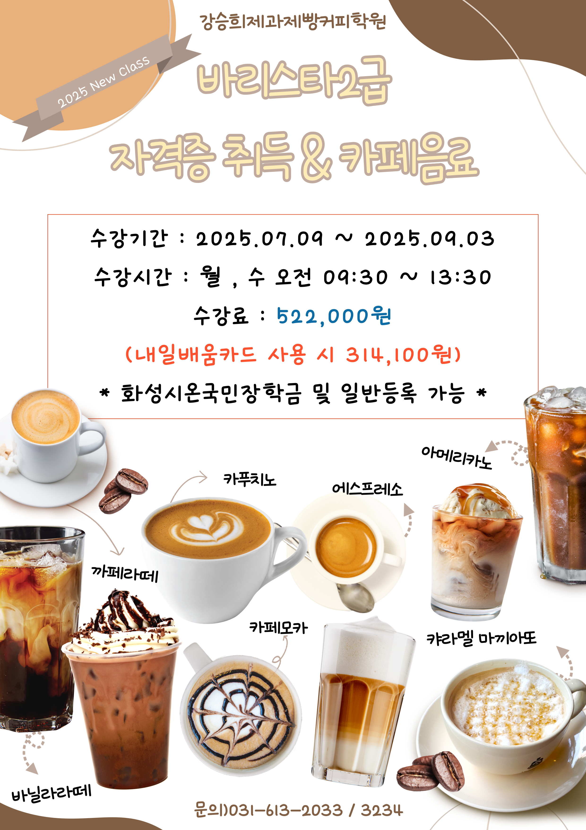 강승희제과제빵커피학원에서 바리스타 2급 자격 대비 + 카페 음료 실습 수업이 개강합니다!❤️