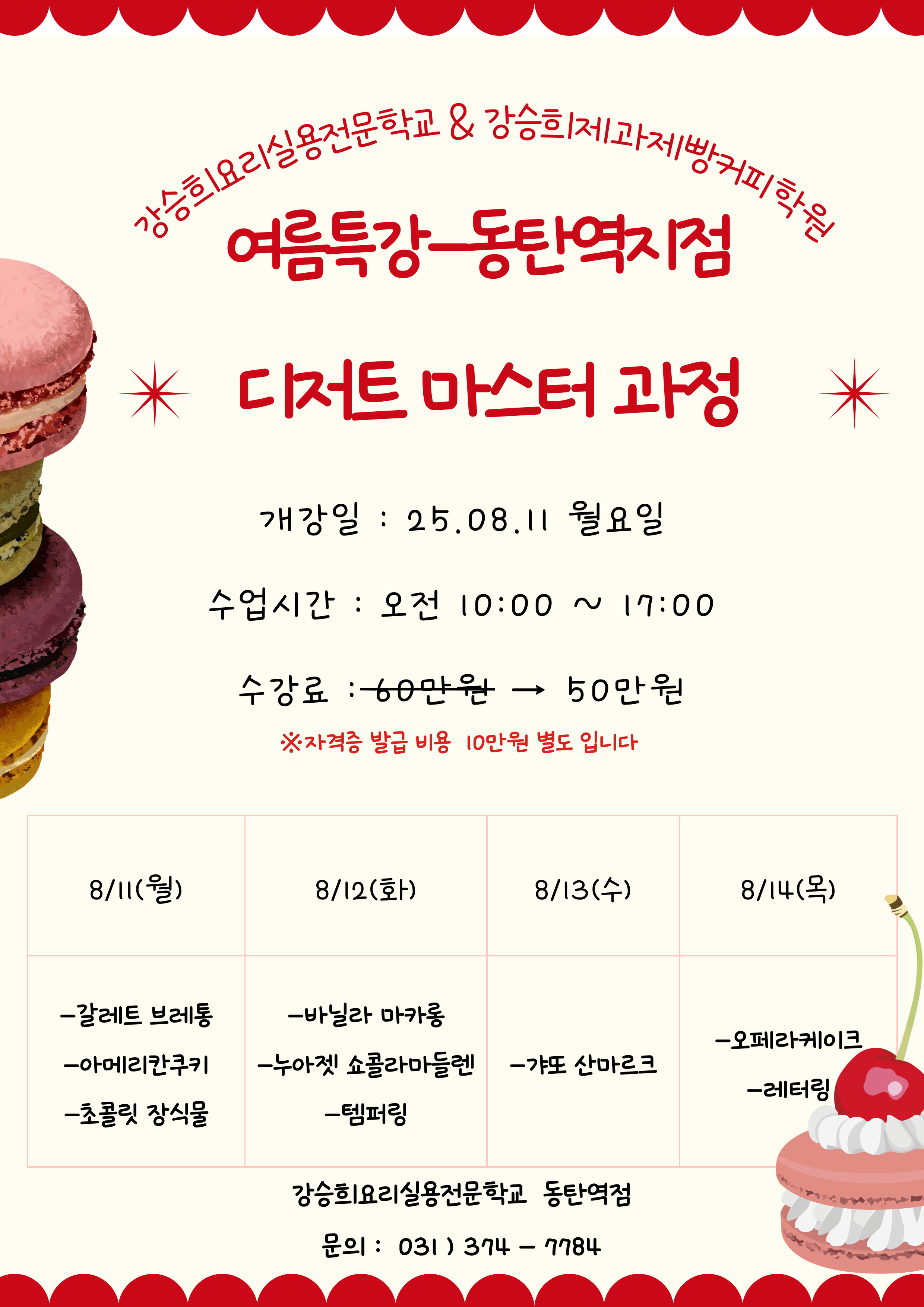 디저트 마스터: 08.11(월) ~ 08.14(목) | 10:00 ~ 17:00 (4일)