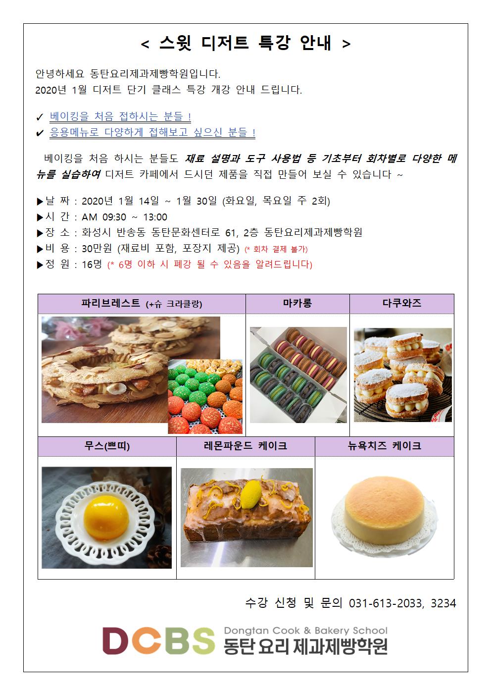 [ 모집완료, 개강 ] 2020년 1월 스윗 디저트 특강 개강 !