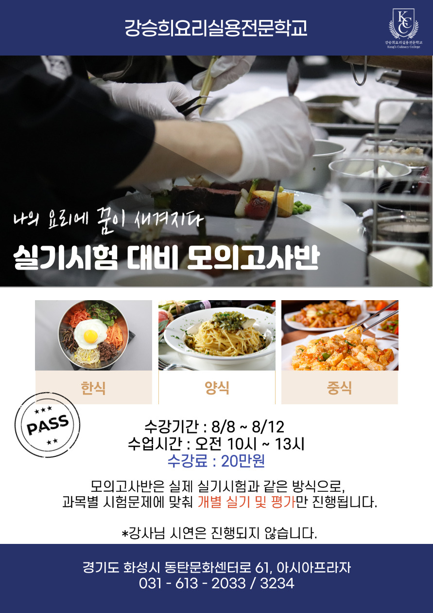 자격증반 부터 취미요리까지 다양한 과정들로 준비하였으니