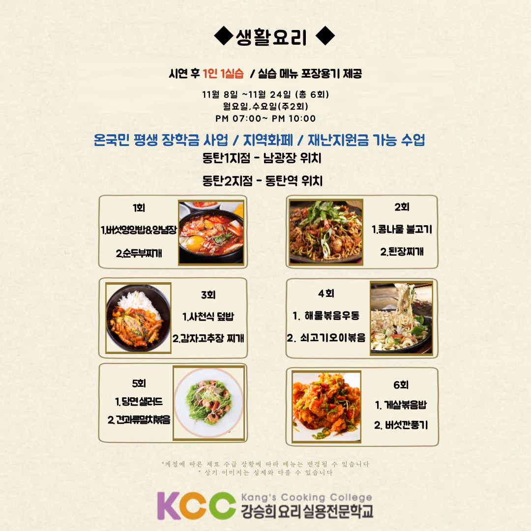 2차! [생활요리] 수업은 동탄 1지점-남광장 위치 , 동탄2지점-동탄역 위치