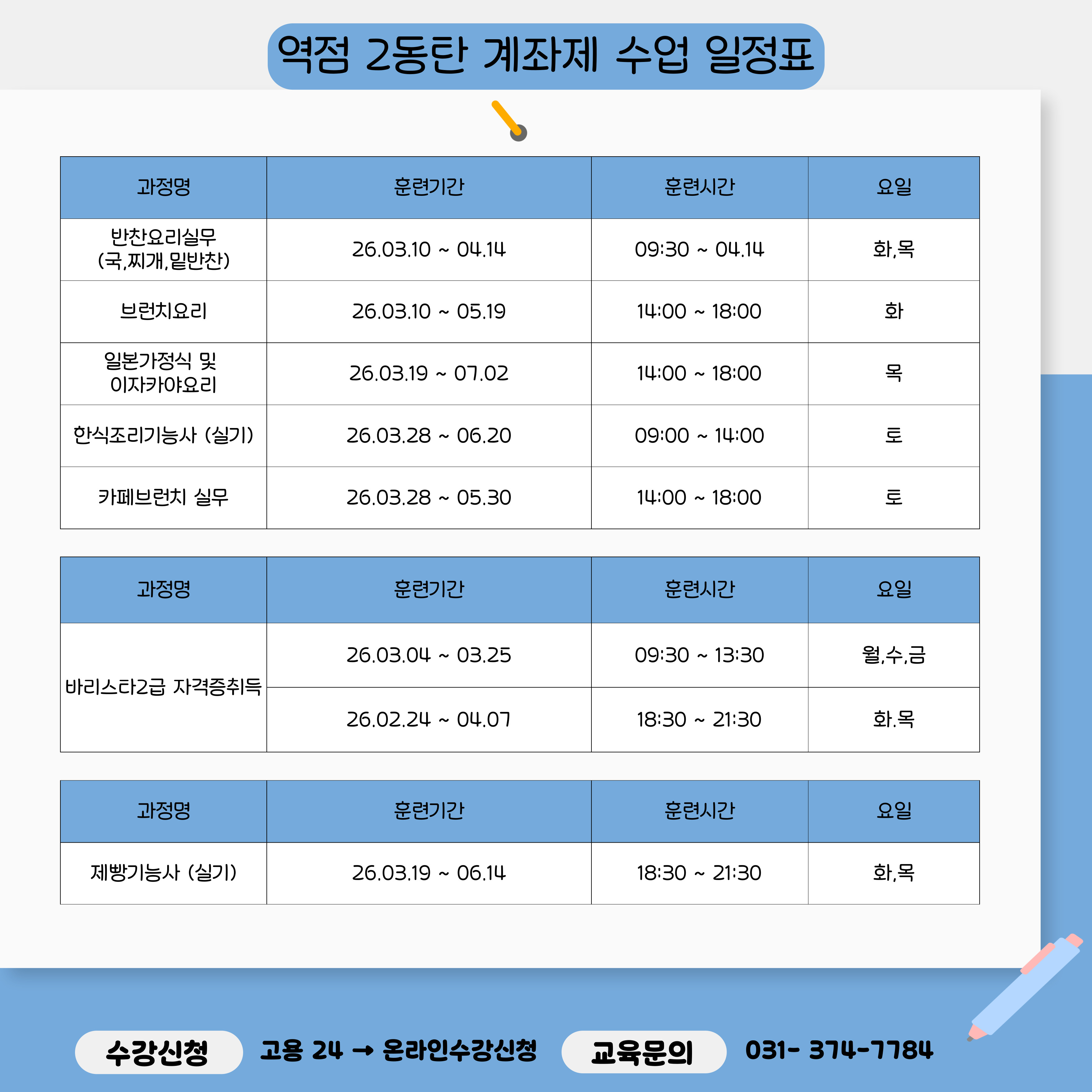 자세한 일정 및 수강 문의는 본원으로 연락주세요.