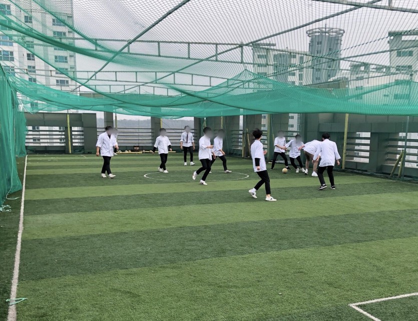 점심시간에 옥상에서 축구하는 학생들입니다^^