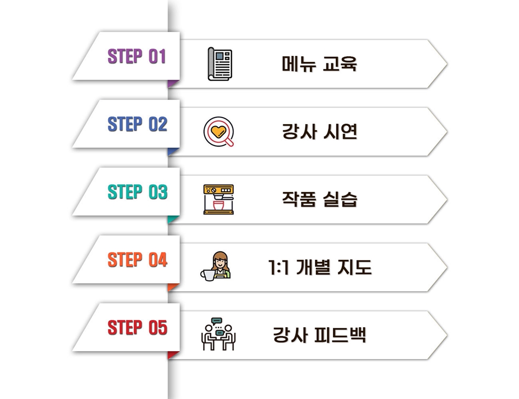 • 바리스타 자격증 메뉴 실습을 통한 직업능력을 개발합니다.